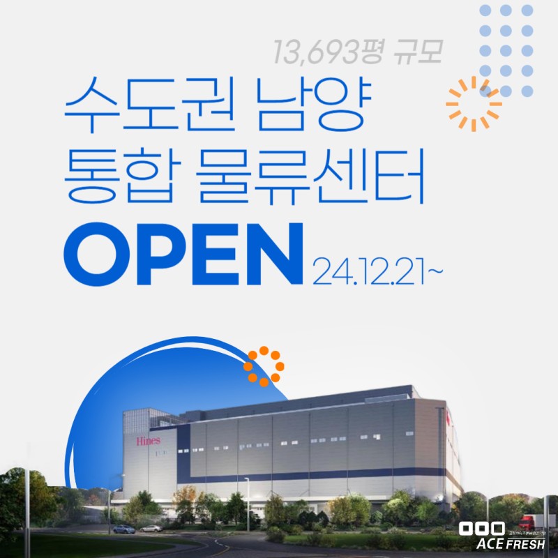 연면적 13,693평 규모의 수도권 남양 통합 물류센터를 24년 12월 21일부로 오픈합니다!